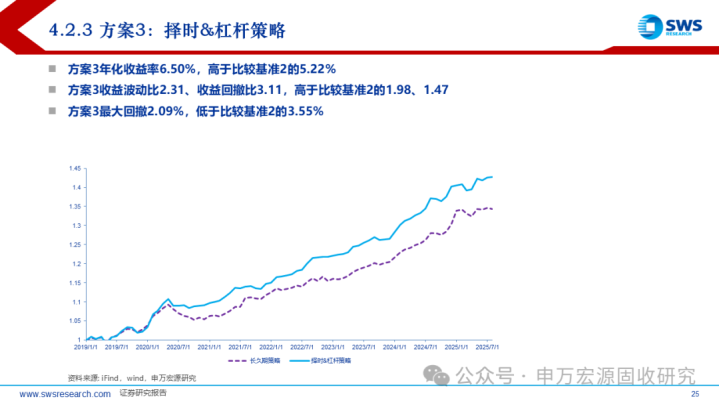 3)择时&杠杆策略,在久期轮动基础上,做多信号下增加杠杆。